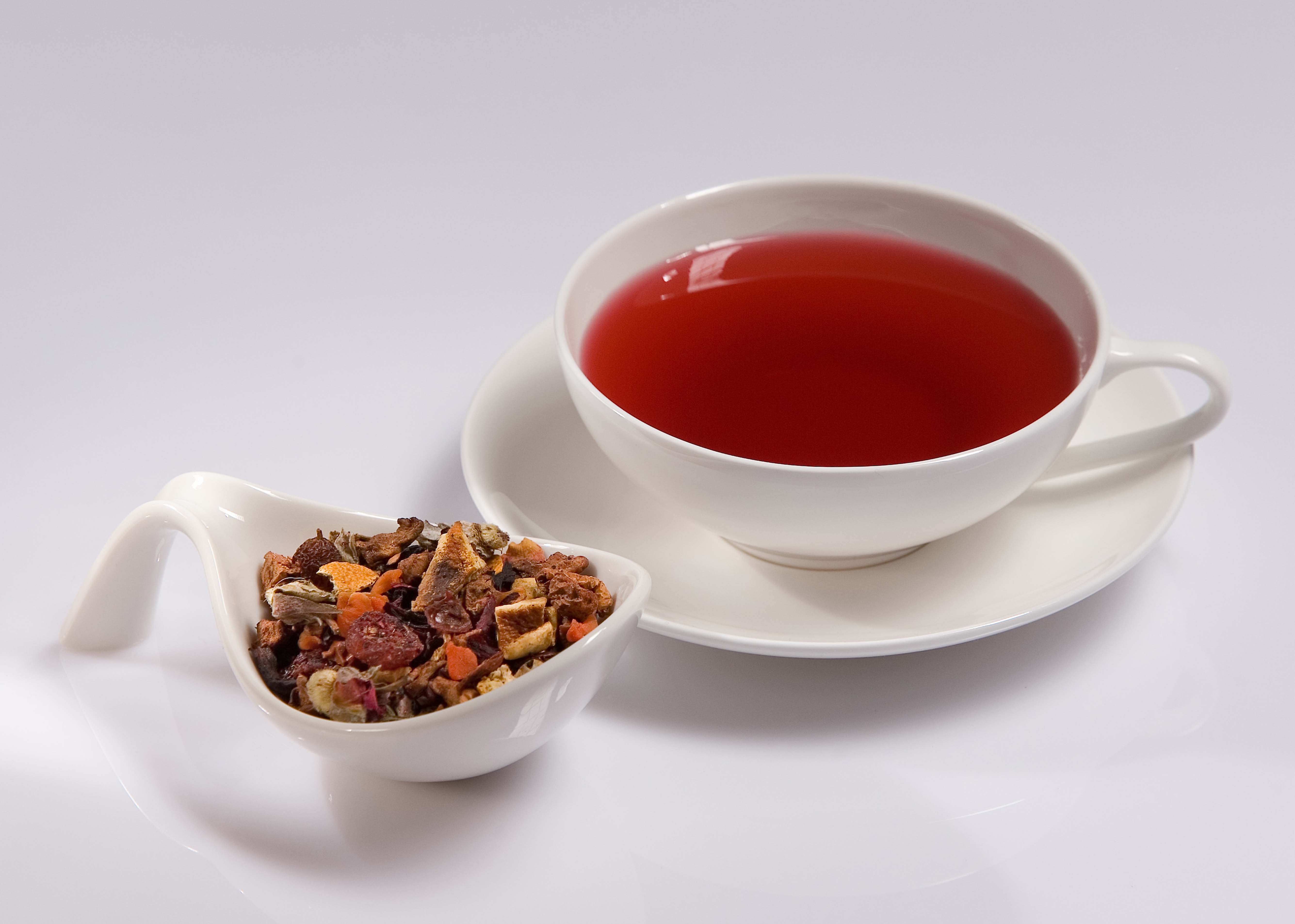 Zutaten: Apfelstücke, Hibiskusblüten, Karottenstücke, Orangenschalen, Cranberries, Aroma, Hagebuttenschalen, Sanddornbeeren, Himbeeren und Rosenblütenblätter.