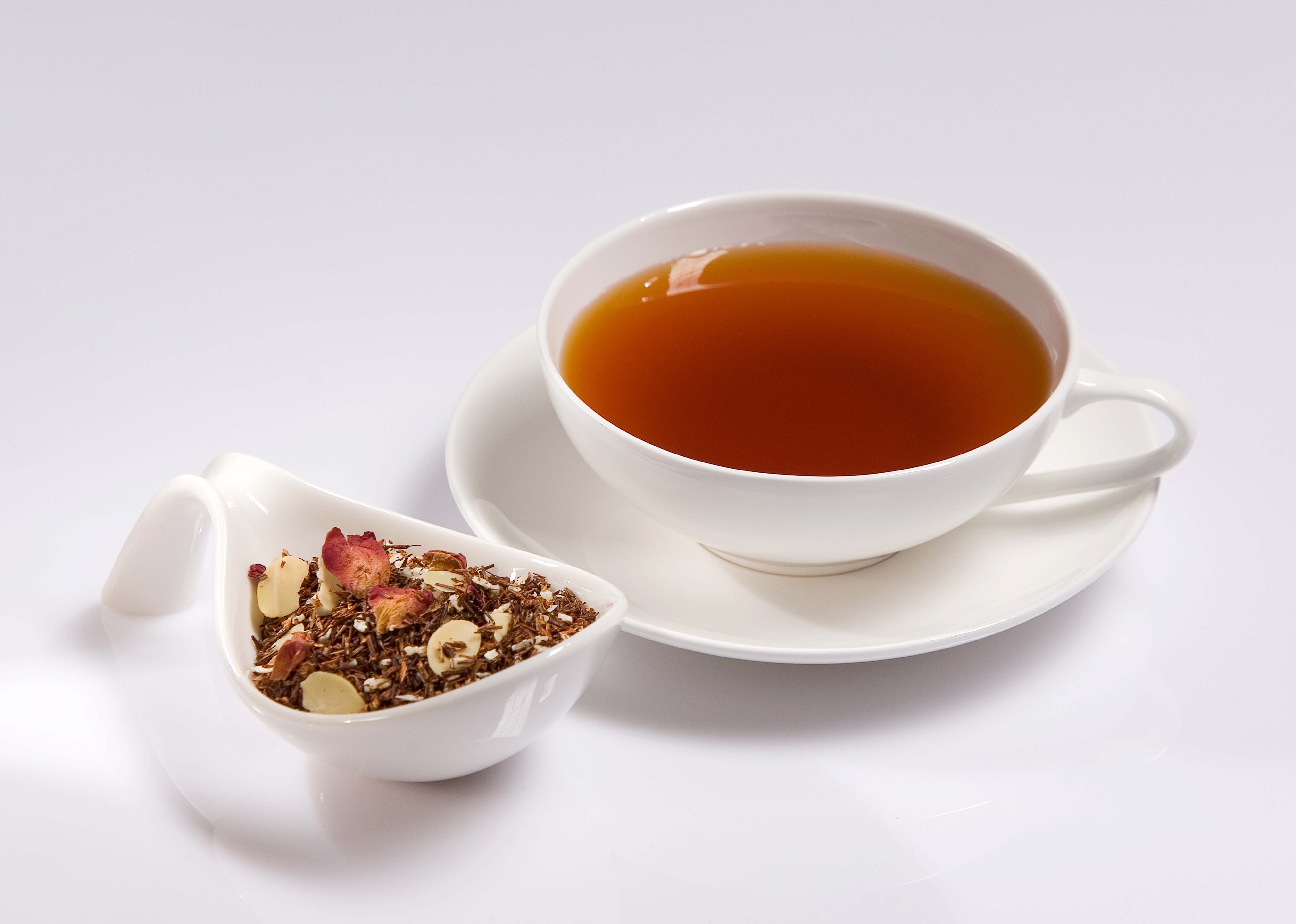 Zutaten: Rooibos, Kokosraspeln, Mandelflakes, Arome und Rosenblüten.