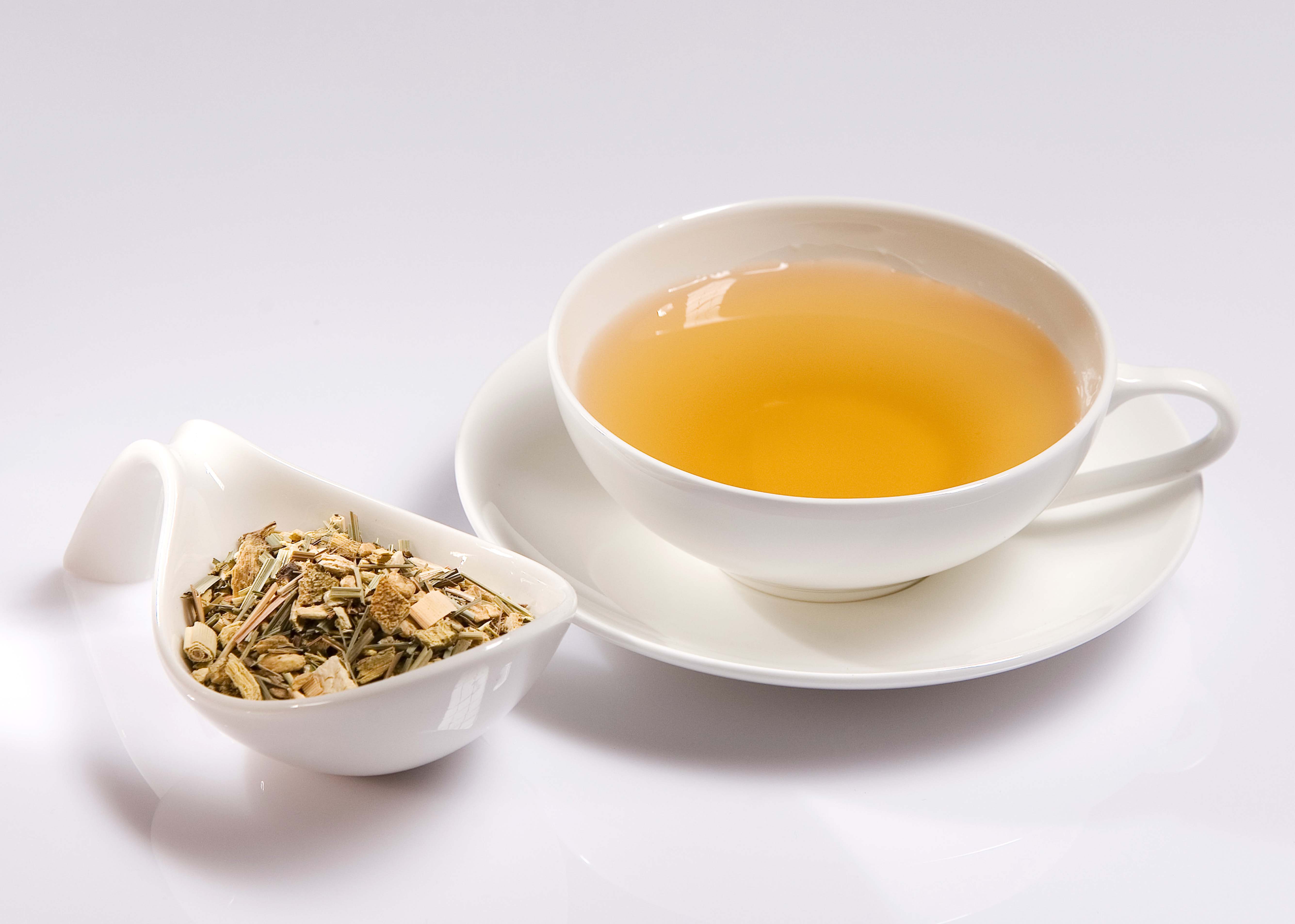 Zutaten: Ingwerwurzel, Lemongras, Süßholzwurzel, Zitrusschalen, Pfefferminze und schwarzer Pfeffer.